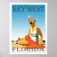 Ein Retro-Poster, das bis jetzt noch nie war. Ein kreatives Redo eines alten Posters, das hätte sein sollen. Der Strand von Florida im Retro-Stil aus der Zeit des Dekos. Helle Farben mit einer Frau am Strand unter einem blauen Himmel.