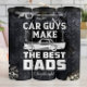 Diese Grafik zeigt eine fett gedruckte Aussage: "CAR TYP MAKE THE BEST VATERS", in weißem Text vor einem dunklen, industriellen Diamantboden präsentiert. Eine klassische Silhouette und zwei Armreihen bilden den Rahmen für die Kernaussage und heben das Thema Automotive hervor. Das Design wird durch subtile Spritzer-Effekte verstärkt, die die robuste und wirkungsvolle Ästhetik ergänzen, die sich perfekt für stolze Autofans und Väter eignet.