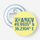 Der moderne runde Flaschenöffner verfügt über Breiten- und Längenkoordinaten für Kharkiv, Ukraine, in einem dunkelblauen Schriftart auf gelbem Hintergrund