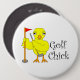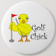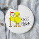 Golfküken in lockigem Text mit einem gelben Küken mit einem Golfclub und der Flagge in einem Golfplatz ist ein lustiges Geschenk-Design für Golfer.