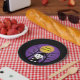 Ein paar lustige schwarze und lila Teller für ein Halloween-Party mit einem Kind in einem GrimskKostüm. Suchen Sie in unserer Kollektion nach zusätzlichem passenden Party-Angebot. © ArianeC Illustrations-Alle Rechte vorbehalten