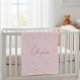 A soft and cozy blanket featuring an adorable pattern of white daisies blooming on a delicate pink background. Perfect for relaxing, naps, and as a cheerful backdrop for your child's playtime. This warm and comfortable accessory adds a touch of sweetness and floral style to the nursery. It makes an ideal and thoughtful gift for any little girl.
