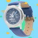Kinderuhr aus Edelstahl mit blauem Lederarmband