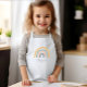 This kids' apron features a boho rainbow in muted pastel earth tones of gray, peach, green and gold. Personalize it with her name in gray handwriting script.