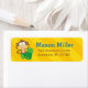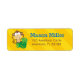 Personalisierte Rücksendeadressen-Aufkleber. Kinder-Adressetikett mit einem lustigen Affen im Dschungel mit gelbem Streifen Hintergrund.