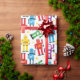 Weißes Geschenkpapier mit farbenfrohen Mustern von Außerirdischen und Robotern aus der Science Fiction von Kindern