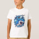Das Shirt dieses Kindes wird mit einem Haikunstdruck gezeigt, Shirt wird in Baumwolle mit einem Crew-Hals und kurzen Ärmeln gezeigt. Color White Passen Sie dieses Objekt an oder kaufen Sie, wie es ist. Börsenbild freepik.com