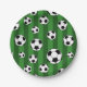 Kids Soccer Ball Pattern on Green Stripes Birthday Pappteller