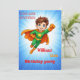 Invite friends to your little hero’s birthday with this vibrant superhero card! Features a flying cartoon hero on a bright blue background. Fully customizable for boys and girls. Perfect for superhero-themed parties.