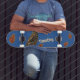 Kiefer- und Kiefernzapfen auf blauem Hintergrund Skateboard