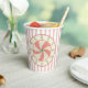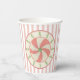Diese Papiertassen zeichnen sich durch einen reizvollen, originellen Designstart mit einem rosa-weiß gestreiftem Hintergrund aus, in dem ein schwebender Kranz zackiger Weihnachtsbäume um ein zentrales Medaillon einer klassischen Pfefferminzbonbons im pinraden Stil herum steht. Das Retro-Ambiente der Jahre 1940-1950 beruht auf verblassten Rot- und Grün- und 'Grautönen'-Effekten.