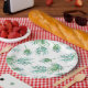 Teller aus Papier mit original Seidenmuster bedruckt.