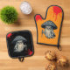 Mit diesem kühnen Halloween-Ofen-Mitt schützen Sie Ihre Hände in sprichwörtlichem Stil, mit einem schelhaften Pilzgeister, der ein Messer hält, vor einem blutüberfluteten, blutüberbluteten Orangenboden. Der Pothalter zeigt den gleichen Geist auf einem schwarzen Hintergrund mit einem abkühlenden Spritzer. Ideal, um während der Sportsaison einen unheimlichen Charme in Ihrer Küche zu vermitteln oder um Ihren Lieblingssänger zu verführen. Hitzebeständig und erschreckend lustig!