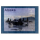 Auf einer Briefmarke des unabhängigen Alaska wird ein Tor von Killerwalen dargestellt, die ins Meer hinausgehen.