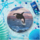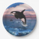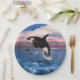 Eine Herde von Orca Killer Walen schwimmen im Arktischen Ozean. Eisberge schwebend im Meer und durch den Sonnenaufgang schimmern die Wolken rosa. Passen Sie an, um das Geschenkprodukt personalisiert zu machen!