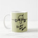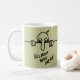 Klassisch weiß 11 oz. Tasse mit einem Bild auf beiden Seiten des Zweiten Weltkriegs Graffiti "Kilroy was Here" auf Khaki.