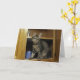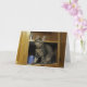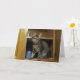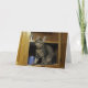 Cette carte de voeux vierge présente notre adorable chat sibérien rayé gris, Kimber, attrapé vilain et escalade dans le placard de la cuisine avec les verres propres. Cette carte de voeux comique est parfaite pour chaque amoureux des chats.