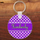 Niedlicher Schlüsselanhänger in kleinen weißen Punkten auf lila Hintergrund, auf dem Kimberly-Namen gedruckt ist.