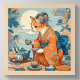 Kimono Kitty mit Tee Japanisch Orange Blue Poster