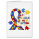 Ein Puzzlespielstück, das 'mich Liebe ein Kind mit Autismus" liest, Puzzlespielstücke von Blauem, von Rotem und Gelb und das Autismusbewusstseinsband auf Autismusbewusstsein T-Shirts, Hoodies, Bechern, Magneten, Karten, Aufklebern, Taschen, keychains, Knöpfen und anderen Einzelteilen.