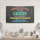 Feiern Sie die Errungenschaft Ihres Kindes und fühlen Sie sich mit einem niedlichen Banner der personalisierten Abschlussfeier besonders wohl. Der gesamte Text ist einfach für Kindergarten, Vorschulen oder Grundschulen anzupassen und beinhaltet Namen, Klassenzimmer, Schule, Ehren, inspirierendes Zitat oder einen anderen Text Ihrer Wahl. Das farbenfrohe Design besticht durch einen schwarzen Imitat-Chalkboard-Hintergrund, festliche Konfetti-Punkte, eine Mörtel-Kappe aus weißer Kontur und eine stilvolle moderne Typografie in Orange, aquamarinem Grün, Gelb und Blau. Geschlechtsneutrale Farben sind für Mädchen oder Jungen geeignet. Dieses Party-Schild ist eine elegante Art, den besonderen Tag eines Kindes zu feiern. Herzlichen Glückwunsch an den Absolventen!