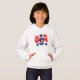Die Kinderpullover-Kapuze wird in Weiß mit einem patriotischen 4. Juli USA-Druck gezeigt, dieser Kapuze ist aus hochwertigen Materialien und Handwerkskunst. Passen Sie dieses Objekt an oder kaufen Sie, wie es ist. Bild