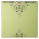 Einzigartige, künstlerische Keramik-Fliesen für Kinderbäder, mit einer Blume- und Blattkomposition auf hellolivgrünem Hintergrund, entworfen von PiccoGrande.