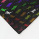 Eine bunte Fleecedecke mit einem Dinosauriermuster aus Regenbogen. Mehrfarbige T-Rex, Triceratops, Pterodactyl, Gallimimus und Diplodocus.