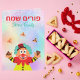 Kinder farbenfrohe Hamantash Clown glücklich Purim Karte