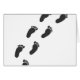 Ein Set schmutziger Fußspuren von Kindern, die auf weißem Hintergrund über die Seite gehen