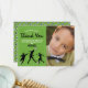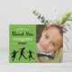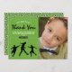 Geburtstagskarten zum Thema Fußball bedanken sich bei einem grünen Fußball-Hintergrund, einem Foto des Kindes, Fußballspielern, Fußbällen und einem modernen Dankeschön-Template, das leicht zu personalisieren ist.