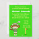 Golf Birthday Einladungen mit einem Socken Affen schwingen einen Golfclub. Beim Design ist der Golfball in einem Loch unterwegs. Anpassen mit Ihren Party-Details.Kristiw