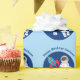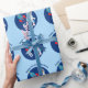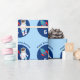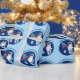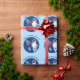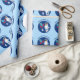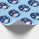 Cooles, individualisierbares Weltraumverpackungspapier für ein Kind, das Raketenschiffe und Planeten befördert. Fügen Sie den Namen und das Alter Ihres Kindes in Blau und Weiß hinzu, um Ihr Geschenk für einen Jungen zu personalisieren, der Astronauten mag, die neben Raumschiffen schwimmen.