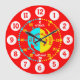Kinder lernen, die Zeit mit hellroter Wanduhr zu e