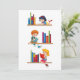 Kinder, die in Regalen sitzen und Bücher lesen. Dieses Design sieht wirklich effektiv auf diese Einladungen