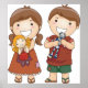 Zwei Kinder ein Junge und ein Mädchen, das Spielzeug hält. Dieses Design sieht wirklich effektiv aus auf diesem Poster
