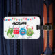 Dieses Monster-Gepäckanhänger ist perfekt für Kinder, die im Urlaub sind. Das Tag zeigt, 4 Monster in den Tönen grün, blau und rot, bunting und ihren Namen. Die Stile, Größen und Farben des Schriftartes können nach der Personalisierung geändert werden, indem Sie auf den Link "Weiter anpassen" klicken.