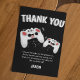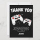 Schicken Sie Ihren Freunden eine besondere Dankeschön-Karte und danken Sie ihnen dafür, dass sie Ihr Party besucht haben und für ihre Geschenke dankbar sind. Mit zwei Kontrolle-Pads auf schwarzem Hintergrund, mit spielerischem Text, der "DANK YOU" und "Ich genoss den Kuchen und das Geschenk auch, aber mein Lieblingsteil war, dich zu sehen! VIELEN DANK, DASS SIE ZU MEINEM PARTY UND DEM WUNDERSCHÖNEN GESCHENK" UND "IHREN NAMEN. Alle Stile und Hintergrundfarben des Schriftartes können durch Anklicken des entsprechenden Links nach der Personalisierung geändert werden.