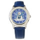 Kinderuhr aus Edelstahl mit blauem Lederarmband