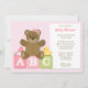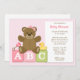 Diese niedliche Baby-Dusche verfügt über einen Teddybär mit rosa Bogen und einem Gummistopfen und einem Rind auf den ABC-Blöcken. Diese moderne und lustige Babydusche-Einladung ist perfekt für jede Mutter.