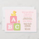 Diese niedliche Babydusche bietet rosa und grüne Babygeschenke und eine Gummiklemme in einem Wagen. Diese moderne und lustige Babydusche-Einladung ist perfekt für jede Mutter.