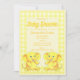 Baby Dusche Einladung mit gelbem Gingham und einem Elefanten von süßem Spielzeug.