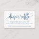 Nehmen Sie an Ihrer Babydusche eine Weinverlosung. Mama to be bekommt einen Vorrat an Windeln und ein Gast gewinnt einen Preis! Einschließlich des Tickets mit der Einladung. Mit dem Vorlagenformular können Sie den Text auf der Karte ändern. Verwenden Sie das erweiterte Bearbeitungsmenü, um die Farbe des gesamten Textes, einschließlich der Überschrift, zu ändern.