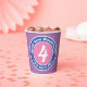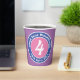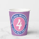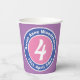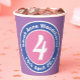 Erinnern Sie sich an einen 4. Geburtstag mit einer Papiertasse, die mit dem Namen des Empfängers, seinem Alter und seinem Geburtsdatum geschmückt ist.