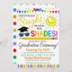 Adorable Kindergarten Abschluss oder Preschool Abschluss Zeremonie Einladung - unsere Zukunft ist so hell, dass wir Schattierungen tragen müssen! Features bezaubernde Schulgrafik - perfekt für einen Abschluss!