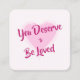 Heben Sie jemandes Geister mit Kindness Cards! Es handelt sich dabei um Quadratkarten mit positiven und inspirierenden Worten, die an Freunde ausgegeben werden können, sich in den Mittagessen von Familienmitgliedern verstecken oder für einen Fremden verlassen werden sollen, um den Tag aufzuheitern. Dieses Design beinhaltet ein rosa Herz und den Text "You verdient to Be Loved".