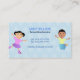 Sehr berufliche, bunte fröhliche Visitenkarte. Lebhafte Farben in bläulichen Tönen, die mit einem Kinderlogo versehen sind. Lassen Sie sich bei der Suche nach Kunden für Ihre Kinderbetreuung einen bleibenden Eindruck machen. Beeindrucken Sie Eltern mit dieser wunderschönen Visitenkarte. Ob Babysitter, Kindermädchen, Hausmeister, Vorschule, Kinderbetreuung oder mehr, dieses farbenfrohe, fröhliche Design wird bestimmt beeindrucken.