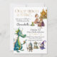 Diese bezaubernde Party Einladung besticht durch ein klassisches Thema aus Folk und Märchen. An den Kanten sind Illustrationen aus klassischen Kindermärchengeschichten gedruckt. In der oberen Ecke befinden sich eine Prinzessin und ein Frosch, König und in der Ferne ihr Schloss. Ein Drache und ein junger Ritter in glänzender Rüstung werden unten links abgebildet, mit einem kleinen Zauberer an ihrer Seite. Die Phrase "Einmal in der Zeit" wird oben in einem skurrilen Schriftart gedruckt.