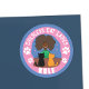 Eine lustige, runde blaue und rosa Aufkleberin einer glücklichen Frau mit ihren beiden schönen Katzen . Der Text lautet "Kinderlose Katzen-Damen-Regel". Sie können es verlassen, wie es ist, oder Sie können es mit Ihrem eigenen ändern. © ArianeC Illustrations-Alle Rechte vorbehalten