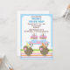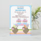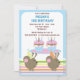 Diese niedliche Kindergeburtstag-Party Einladung besteht aus zwei Mäusen, die zwei Kuchen auf einer Platte über ihren Kopf tragen.